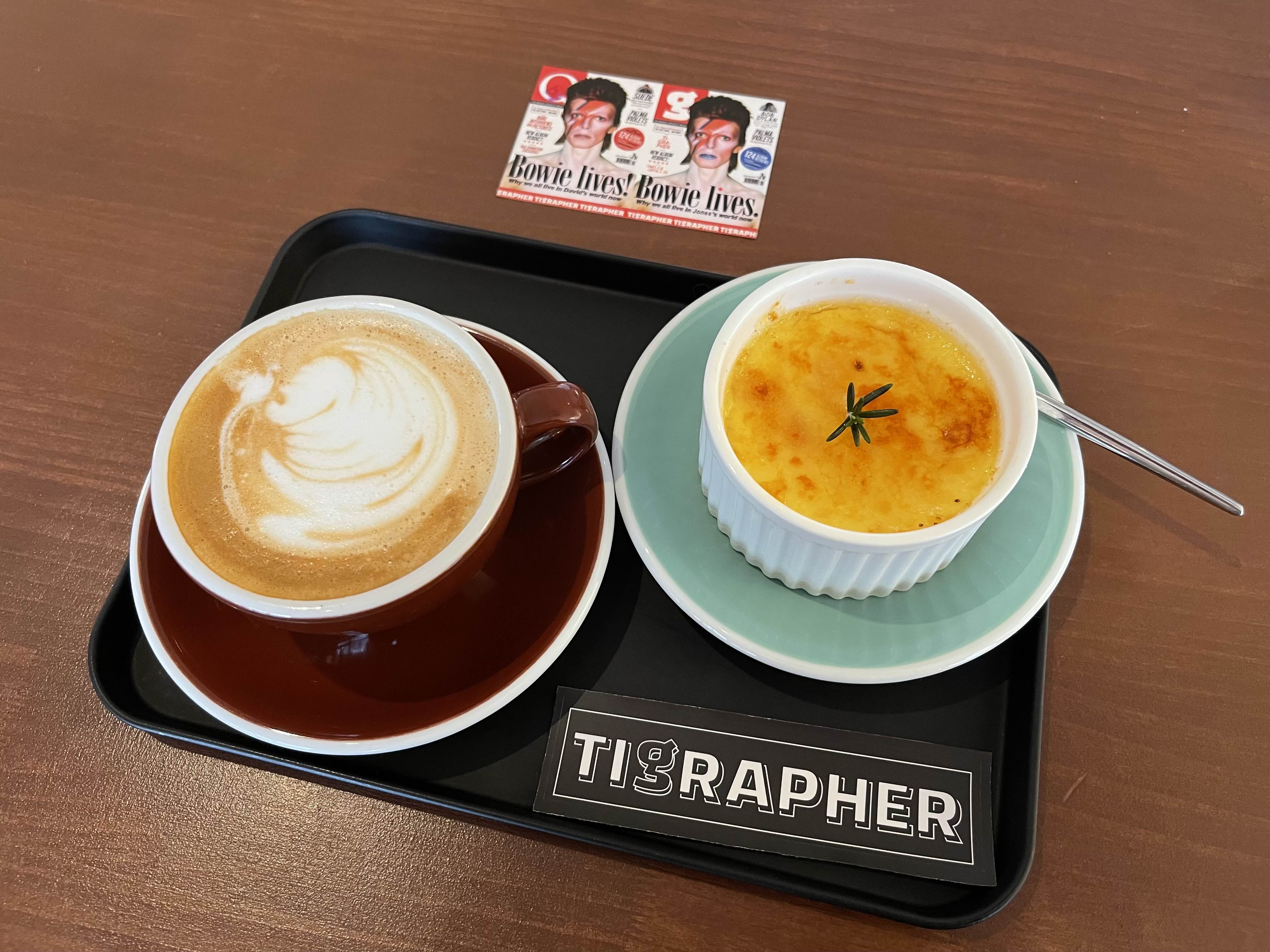 메뉴 등판! 카페라테랑 크렘브륄레를 시켰다. 티그래퍼 쿠폰도 주셨다. 도장 5개를 모으면 음료를 마실 수 있다. 맛은 평타 이상! 괜찮았다.
