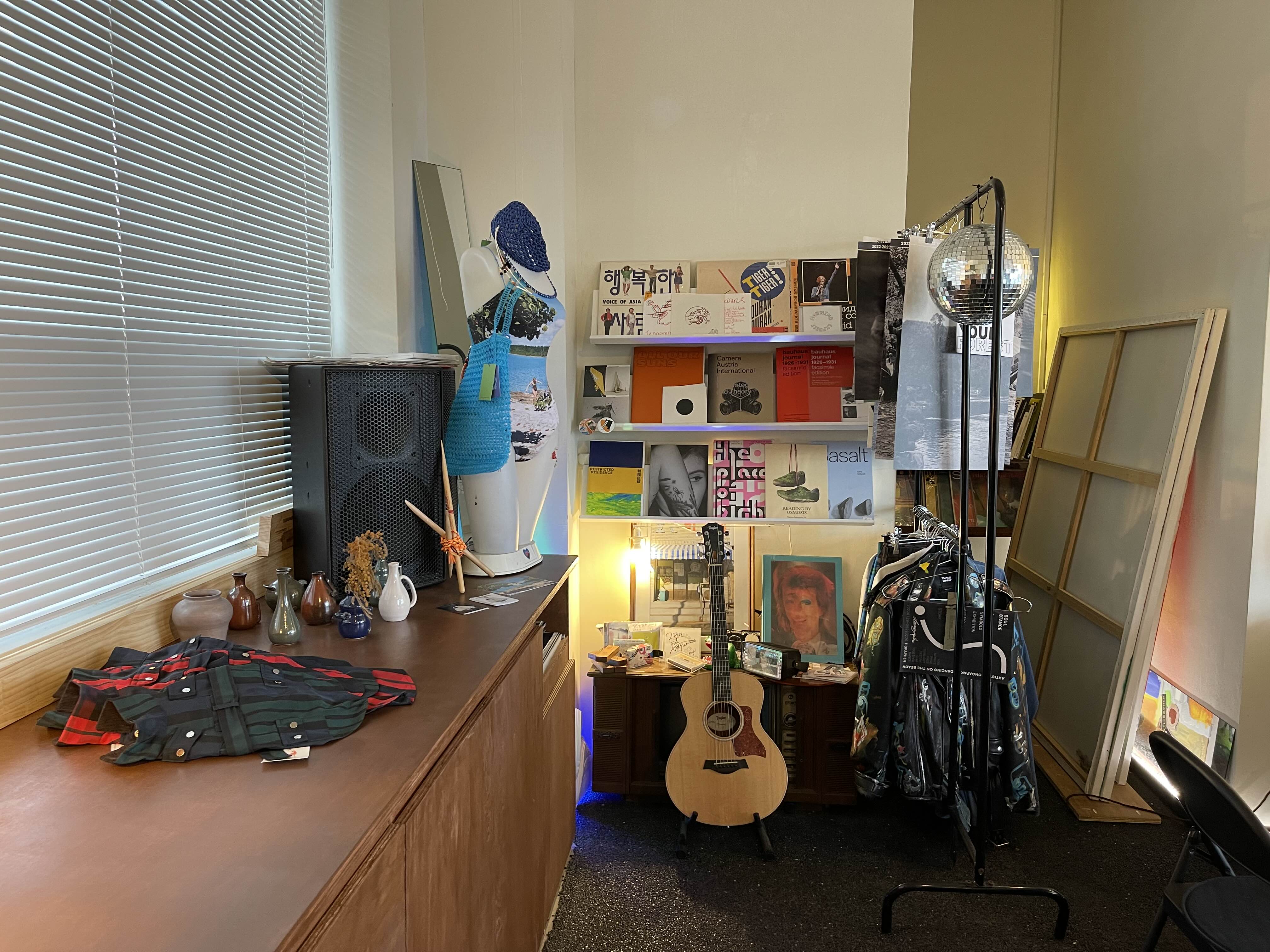 강아지 옷, 수영복, 책 등 다양한 친구들이 대기 중이다. 글래스무브먼트스튜디오의 스테인드 글라스 공예품도 판매한다.