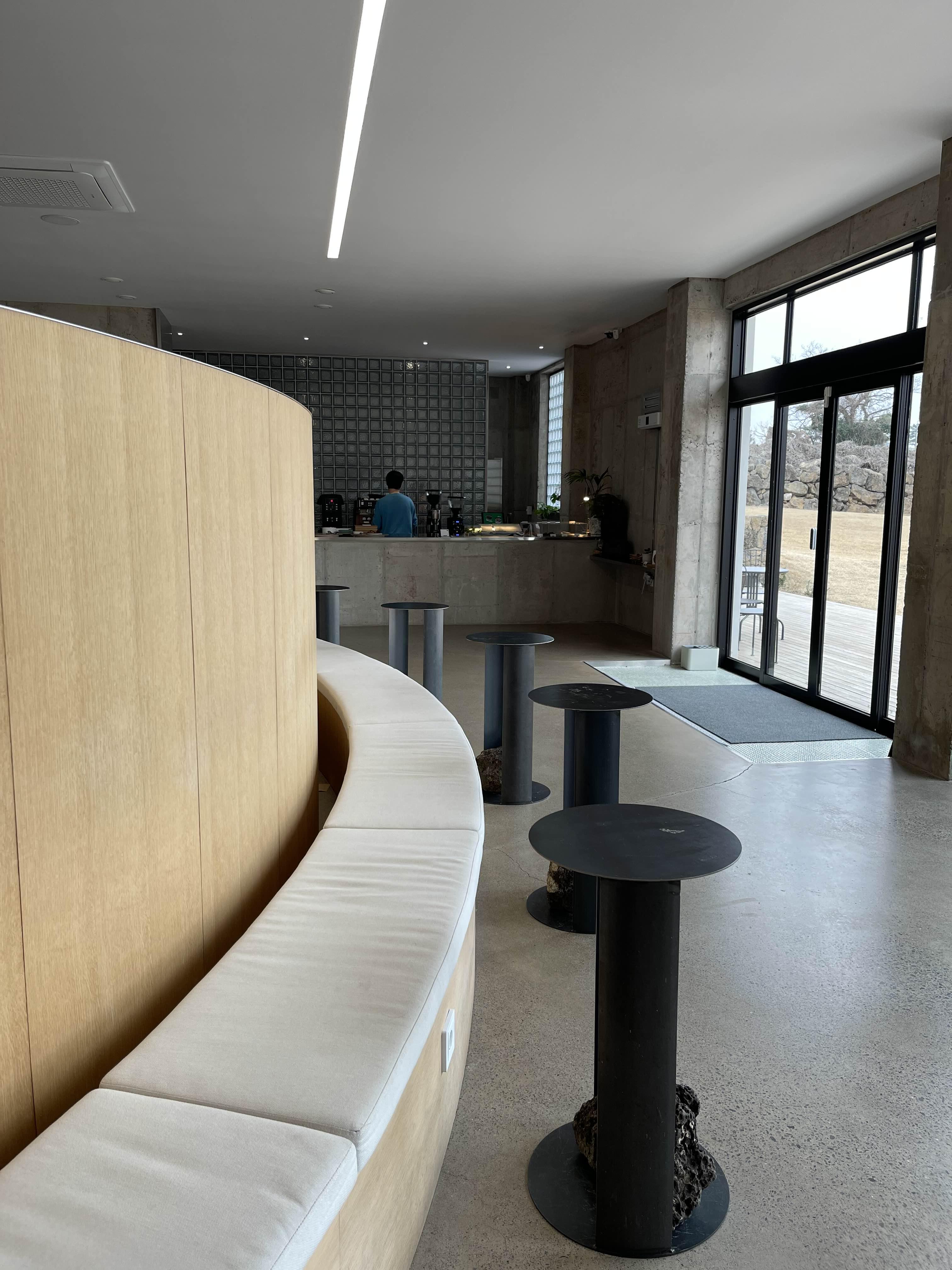 카페 앞쪽에 약간 들어가면 주차장이 있다. 카페 입구가 보이면 바로 오른쪽으로 꺾어 들어가야 한다. 잘 안 보여서 금오름 입구까지 대는데 잘 살펴보고 없으면 금오름 주차장 근처에 대면된다.
