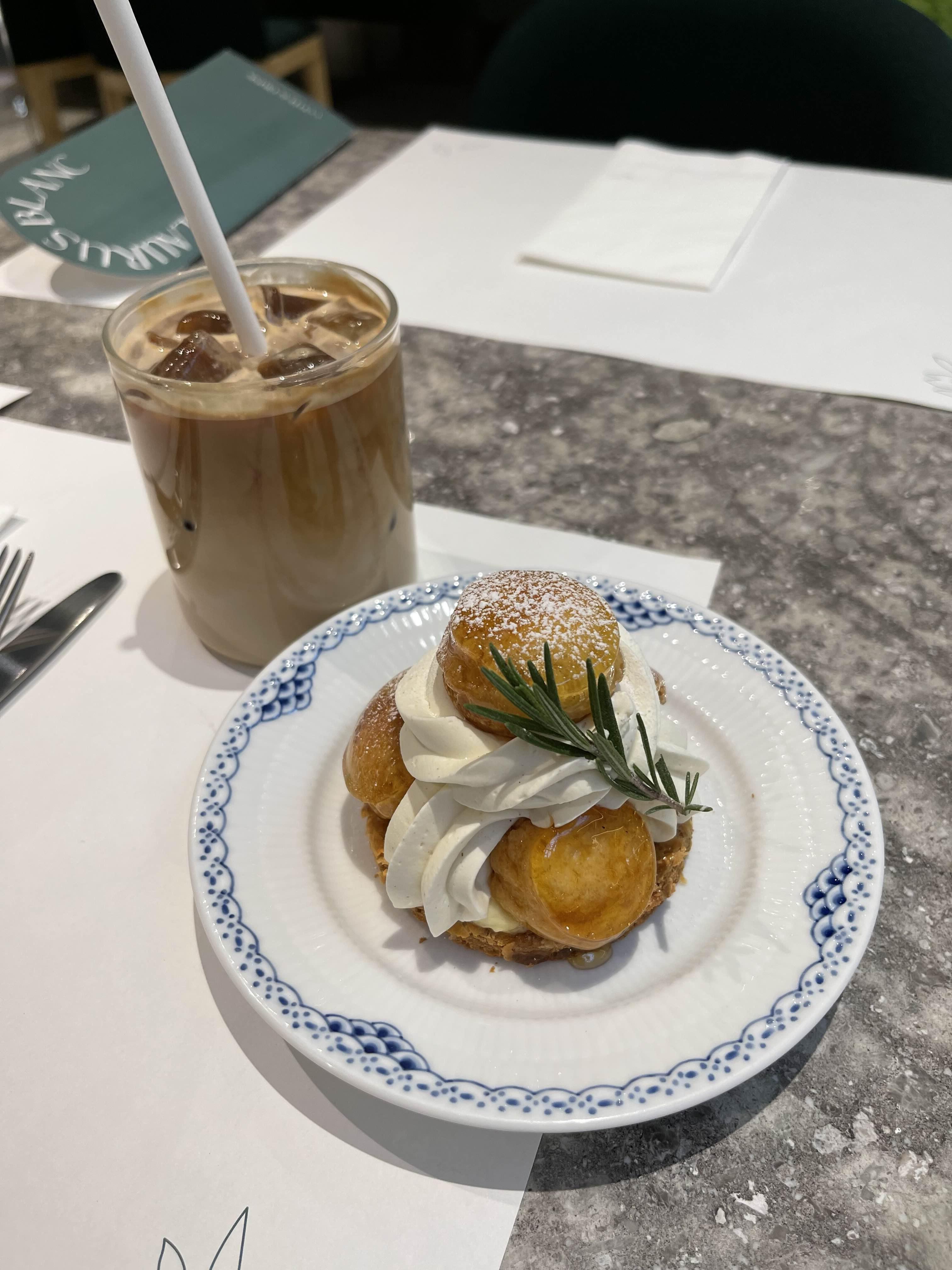 카페라테(매장의 시그니처 아니면 늘 카페라테만 시킨다, 정말 지독한 라테쟁이) 생토노레는 조합이 괜찮았다. 특히 생토노레는 큰 기대 없이 먹었는데 생각보다 맛있었다. 시부스트 크림(슈크림)이 너무 달지 않았고 슈를 덮은 카라말라이즈드된 설탕은 적절한 크런치함을 선사했다. 가장 밑바닥을 차지하는 둥근 파이 시트를 씹으면 고소함이 입안에 가득 퍼졌다.